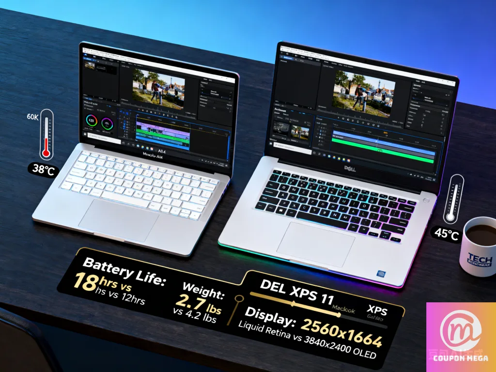 - Dell XPS 15 has cooling systems, but with the discrete GPU and stronger CPU, it can get warm and louder under load. That’s the trade-off for more performance.